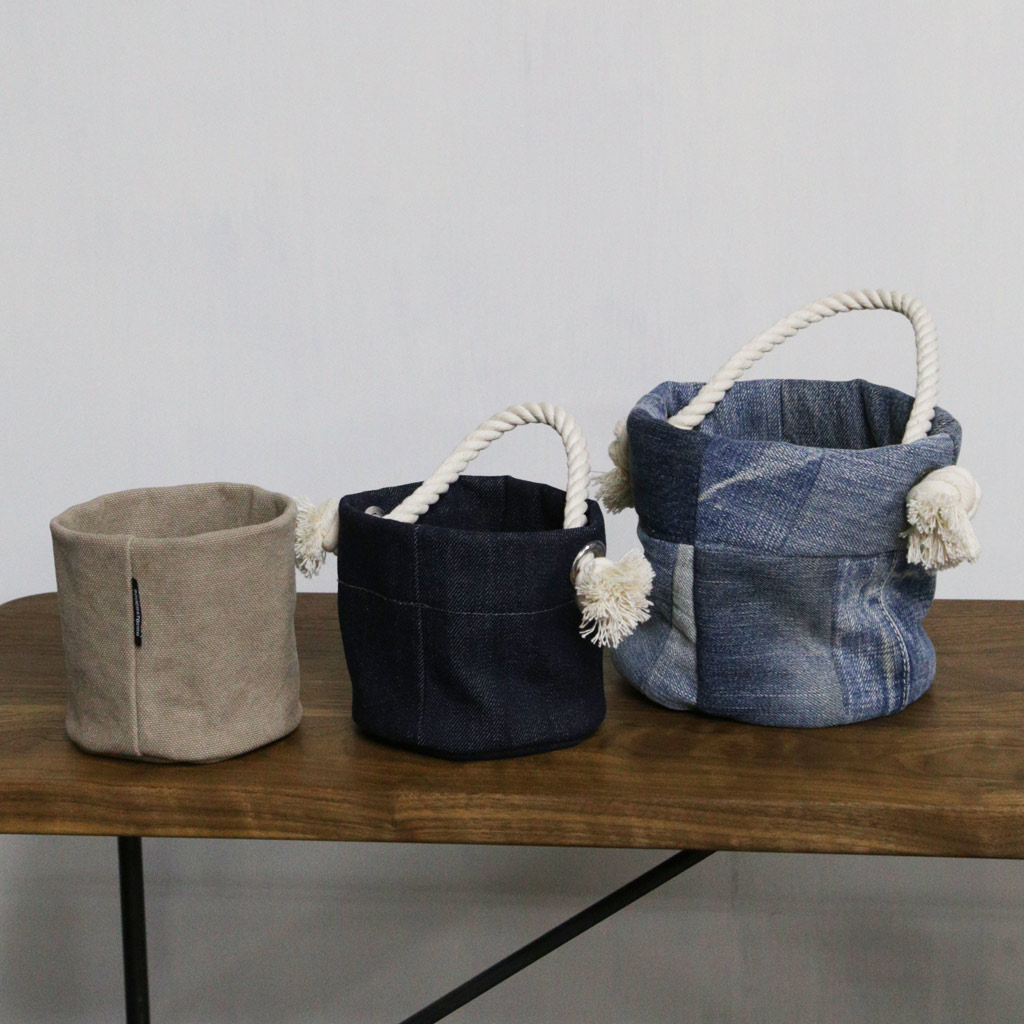 生地はインテリアのアクセントになるデニムパッチワークと、合わせやすい帆布をご用意。